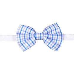 Blue/white bowtie and white with pink/tan stripes
